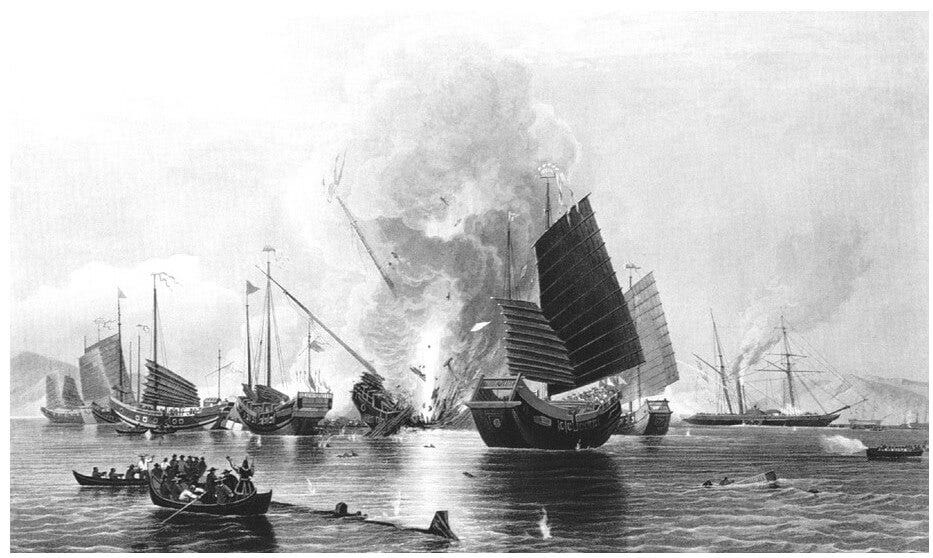 1840年的时候,英国军舰来轰中国的大门并不是为了民主自由,也不是为了占领中国,而是为了做生意赚钱。这些闯进来的西方人,既有商人也有盗匪,既有宗教的传教士也有近代科学和民主自由的传播者。